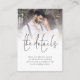 Modern QR Code Photo Wedding Details. Add your QR code leading to your wedding website on the back to enable your guests to scan and view all the details such as directions and accommodation information. An informal set typography in black for the main heading The Details and the rest of the text you can easily personalise. Replace the sample photo with your own favourite.