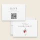 This elegant wedding response card features a delicate watercolor illustration of a red poppy, sprig of lavender, and a charming bee. The floral motif adds a touch of natural beauty and whimsical charm to your wedding stationery. Perfect for couples planning a rustic, garden, or bohemian-themed wedding, this card ensures your guests can easily RSVP. The simple yet sophisticated design complements any wedding aesthetic. Make your wedding planning seamless with these beautiful response cards.