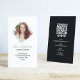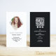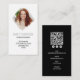 This design features a modern QR code social media business card template, with a trendy professional photo logo template, with Instagram Facebook, and other social media, with website minimalist minimal simple, trendy black and white, an elegant stylish chic scannable code, email web address phone mobile, watercolor brush edge effect, simple business card photography, with a scan scannable QR code generate