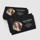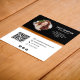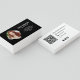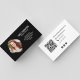 This design features a modern QR code social media business card template, with a trendy professional photo logo template, with Instagram Facebook, and other social media, with website minimalist minimal simple, trendy black and white, an elegant stylish chic scannable code, email web address phone mobile, watercolor brush edge effect, simple business card photography, with a scan scannable QR code generate