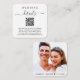 Chic wedding details square enclosure card with "details" in an elegant modern script with swashes. Input your wedding website address to create a QR code for guests to scan for all of the details such as directions and accommodations and to RSVP online. The reverse side features your photo overlayed with your first names and wedding date joined by a heart.