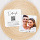 Modern wedding details square enclosure card with "Details" in a chic contemporary script. Input your wedding website address to create a QR code that your guests can scan for all of the details such as directions and accommodations and to RSVP online. The back features your photo overlayed with your names and wedding date joined together by a heart.