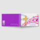 Modern Easter Guest Book, showing a gold colored empty cross in amongst colorful music staves. The Easter text appears in a mauve color. Christians the world over will be singing Hallelujah to celebrate the resurrection of our Lord Jesus Christ at Calvary. This modern Christian Easter guest book would make a great addition to have family, friends, neighbors and clients to write their best wishes (and feedback?) to celebrate Resurrection Sunday at your church. ADD YOUR CHURCH LOGO AND QR CODE AND PERSONALIZE YOUR TEXT. Choose from a wide selection of faith-based Christian Easter designs on cards, invitations, home decor, clothing and gifts, designed by Berean Designs. Matching gifts and church/home decor available.