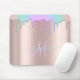Modern Rainbow Drips Rose Gold Monogram Mouse Pad