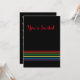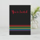 A modern rainbow on black You're Invited invitation for wedding rehearsal dinners, weddings, wedding showers, commitment ceremonies, and other events. Design by Krista Peacock.