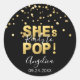 Modern Ready to Pop Baby Shower Gold Black Classic Round Sticker