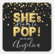 Modern Ready to Pop Baby Shower Gold Black Square Sticker
