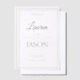 The translucent overlay creates an ethereal presence, allowing soft light to play across the names that matter most. Paired with a matching backer, this design invites layering, customization, and a tactile experience that feels as intimate as the vows you’ll exchange.