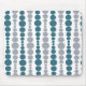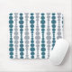 This mouse pad has a mid-century modern design of teal and grey rounded rectangles in increasing and decreasing size running vertically on a field of white.