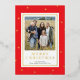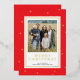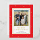 Celebrate elegant Christmas sparkle by sending the Modern Red and Gold Foil Christmas Photo Card this holiday season. The single photo holiday card features a bright red background, beautifully arranged gold foil dots and a luxe gold Merry Christmas to make your greeting shine. Your photo is delightfully framed within a contrasting white rectangle, bordered in a gold foil stroke. The back of the card finishes the classic look with the bright red background. A perfect card for those who love minimalism combined with a touch of luxury.