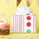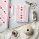 This cute gift wrap features bold polka dots and stripes in bright shades of red and teal on a background of solid white.  Fun for any special occasion.