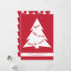 The back features a pattern of white geometric trees in varying sizes on a matching red background.
