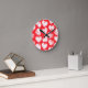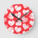 Modern Red and White Doodled Heart Valentine's Day Round Clock