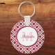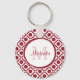 Make a splash with this modern red and white geometric pattern monogram basic keychain with trendy tiled circles. Personalize this bold graphic circle design by adding the name and monogrammed initial of the fashionable young woman.