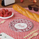 Make a splash with these modern red and white geometric pattern monogram paper plates with trendy tiled circles. Personalize this bold graphic circle design by adding the name and monogrammed initial of the fashionable young woman.