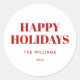 Modern Red and White Happy Holidays Classic Round Sticker