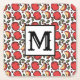 Modern Red Apple Pattern Monogram Square Paper Coaster
