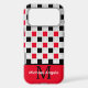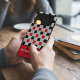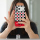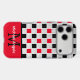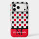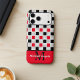 Make a bold statement with this modern Checkerboard geometric phone case, featuring a striking interplay of high-contrast patterns. The design showcases a sophisticated Checkered grid of Black and Red squares accented by a unique white-and-black "plus sign" motif, creating a textured, architectural look.