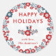 Modern Red & Blue Christmas Wreath Happy Holidays Classic Round Sticker