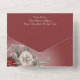 ALSO AVAILABLE WITH A QR CODE TO SCAN IN THE RSVP AREA OR WITHOUT DINNER SELECTION OPTIONS. This design features red, tan, and brown floral rose bouquets on a dark red background. Personalized All-In-One invitations are a unique combination of both a beautifully printed custom invitation with an easy to tear off perforated RSVP postcard. And they are so easy to use! You simply fold, then seal the back flap with the three included clear stickers, and mail. And when your guests receive your custom invite, they just tear the perforated RSVP Card off and drop it back in the mail to you!