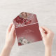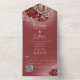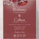AVAILABLE WITH OR WITHOUT A QR CODE TO SCAN IN THE RSVP AREA. This design features red, tan, and brown floral rose bouquets on a dark red background. Add a QR code to your invitation so that gusts can quickly access your wedding Website for details, directions, menu options, and more, or add your gift registry Web URL. Personalized All-In-One invitations are a unique combination of both a beautifully printed custom invitation with an easy to tear off perforated RSVP postcard. And they are so easy to use! You simply fold, then seal the back flap with the three included clear stickers, and mail. And when your guests receive your custom invite, they just tear the perforated RSVP Card off and drop it back in the mail to you!