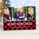 Modern Red Buffalo Plaid Photo Collage Holiday Card