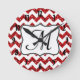 Modern Red Glitter Chevron Zig Zag Stripe Fabric Print Pattern Monogram Initial Wall Clock Personalized