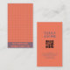 Modern Red Coral Chequered Pattern QR Code Business Card