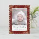 Send customizable and personalized holiday greetings to friends, colleagues and family in simple, minimalist, elegant, fun, festive and modern photo cards! A beautiful frame of variety of gold winter snowflakes on maroon red background surrounds your photo on round scallop edge paper. The greeting " Merry Christmas " is written in elegant calligraphy, and below features your custom greeting message from your family name in modern typography. Reverse to reveal a beautiful the full gold winter snowflakes on maroon red pattern background.