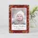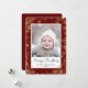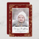 Send customizable and personalized holiday greetings to friends, colleagues and family in simple, minimalist, elegant, fun, festive and modern photo cards! A beautiful frame of variety of gold winter snowflakes on maroon red background surrounds your photo on round edge paper. The greeting " Merry Christmas " is written in elegant calligraphy, and below features your custom greeting message from your family name in modern typography. Reverse to reveal a beautiful the full gold winter snowflakes on maroon red pattern background.