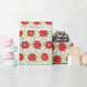 This floral wrapping paper rolls feature red flowers with honeydew green leaves on a pastel background with black tiny dots. It's cute for birthdays, Mother's Day, Bridal Shower, and other Spring or Summer occasions and holidays.