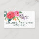 Your name and profession are elegantly displayed on this rustic flora inspired professional business card. Surrounded by delicate and trendy pink flowers and set on a white background, this design is eye-catching and very beautiful.