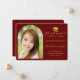 Modern Red Gold Cap Script Arch Photo Graduation Announcement