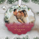 Modern Red Gold Script 2 Family Photo Christmas Ornament Card