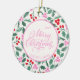 Modern Red & Green Christmas Floral Pattern Ceramic Ornament