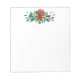 A notepad with a pretty floral bouquet in red, gold and green colours.