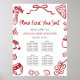 Modern Red Hand Drawn Italian Pizza Seating Chart
