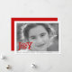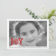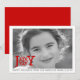 Modern red joy minimal Christmas holiday flat photo card featuring a baby photo and the word “JOY” in rred with a snowflake instead of the letter O and a white border around it. This elegant and contemporary holiday design is a completely customizable template.