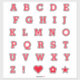 Modern alphabet with bold red monogram letters alphabet sticker pack for monogramming, personalizing, customizing, note writing, journals, notebooks, and more. This set also includes an exclamation point, heart, flower, and star.