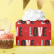 This romantic design features a modern black and white text "Love" in popular typography on a red background. Perfect for Valentine's Day, birthday, anniversary, wedding, engagement and more.