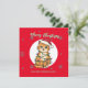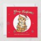 Modern red merry cat snowflake Christmas kitten Holiday Card