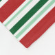 Keep cozy this winter with a stylish fleece blanket featuring a modern pattern of red, mint green, dark green, and white stripes in various widths. A perfect accent for Christmas.