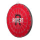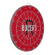 Modern red dart board with a white name and black monogram. Personalize with name and initial.
