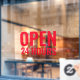 Modern Red Open 24 Hours Window Cling