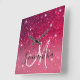 Modern Red & Pink Glitter Sparkles Name Square Wall Clock