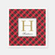 Modern Red Plaid Check Gold Accents, Monogrammed Napkin