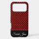 Modern Red Polka Dot Pattern Custom Name Black