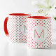 Modern Red Polka Dot Pattern Cute Initial Monogram Mug