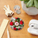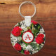 A modern monogram and nametag on photo of a bouquet of red roses on a key chain.