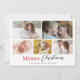 Modern Red Script Photo Collage Merry Christmas Holiday Card